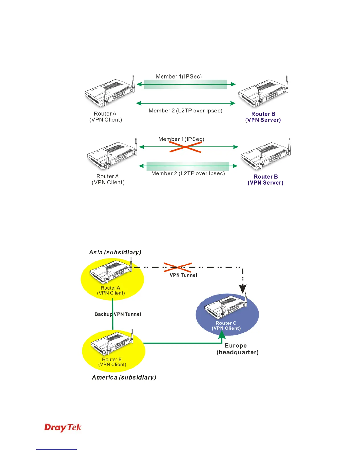 However, if the connection is off-line, Router A will use Member 2 VPN tunnel (with L2TP