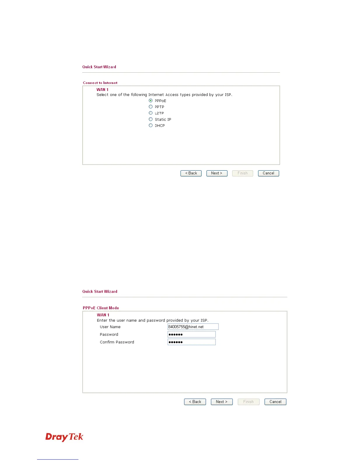the ISP provides you PPPoE interface. Then click Next for next step.