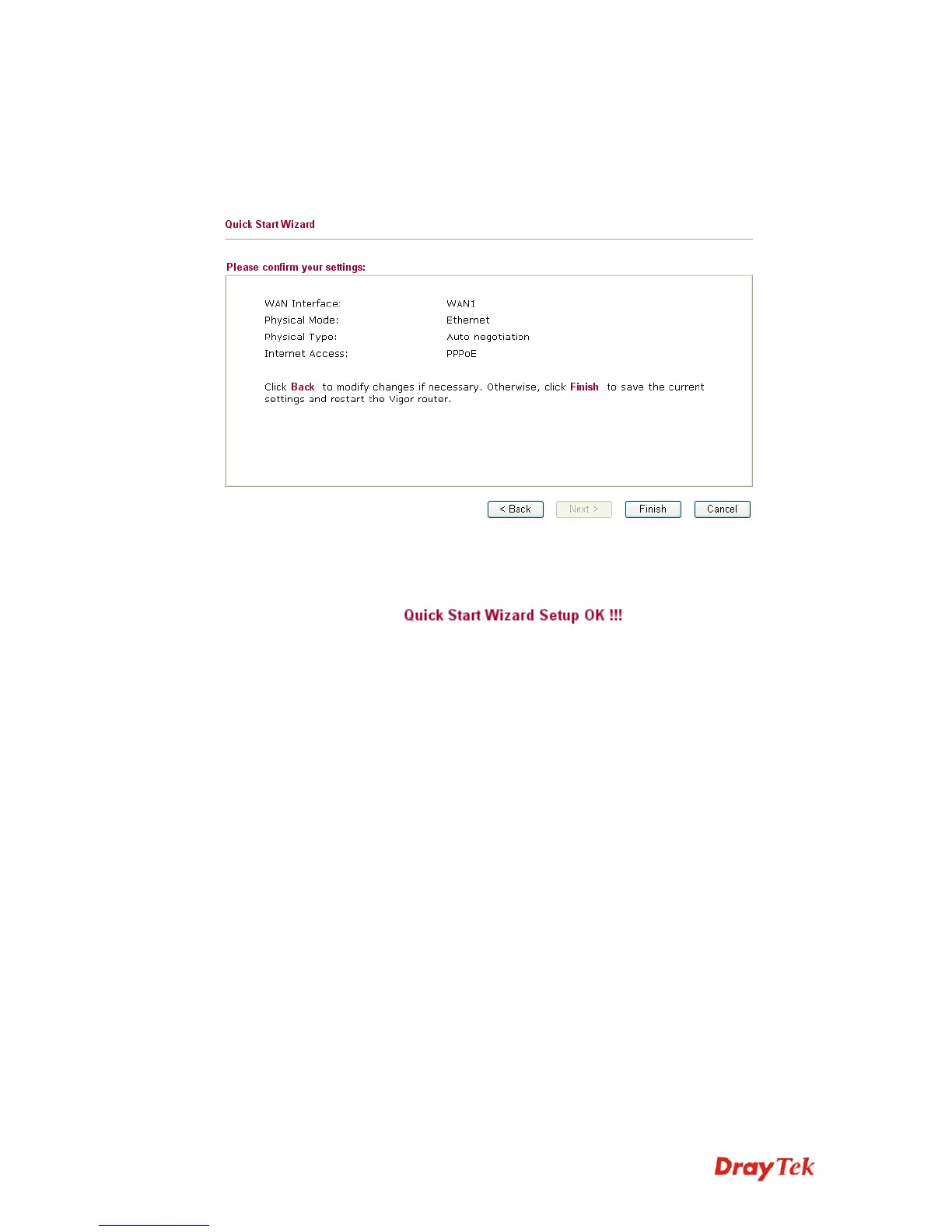 Click Finish. A page of Quick Start Wizard Setup OK!!! will appear. Then, the system