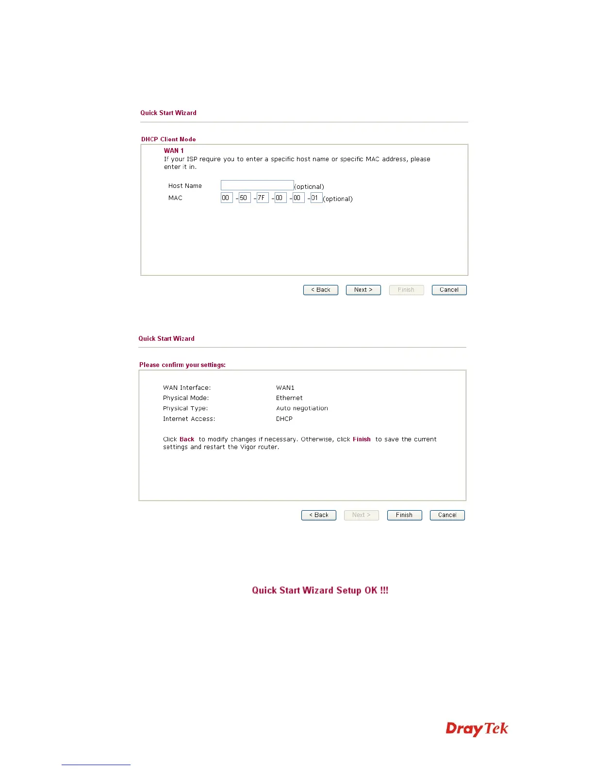 Click Finish. A page of Quick Start Wizard Setup OK!!! will appear. Then, the system