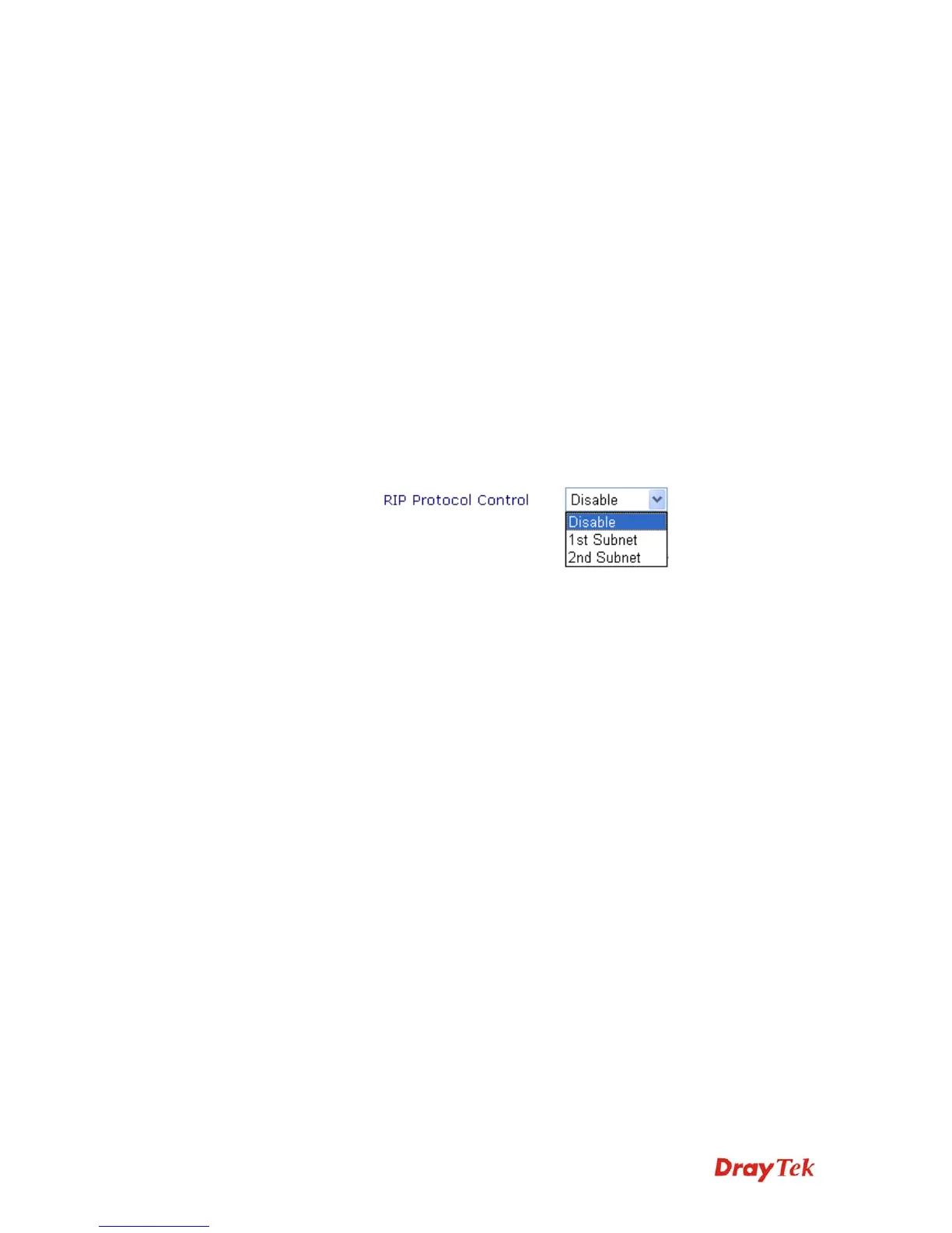 RIP Protocol Control Disable deactivates the RIP protocol. It will lead to a stoppage of
