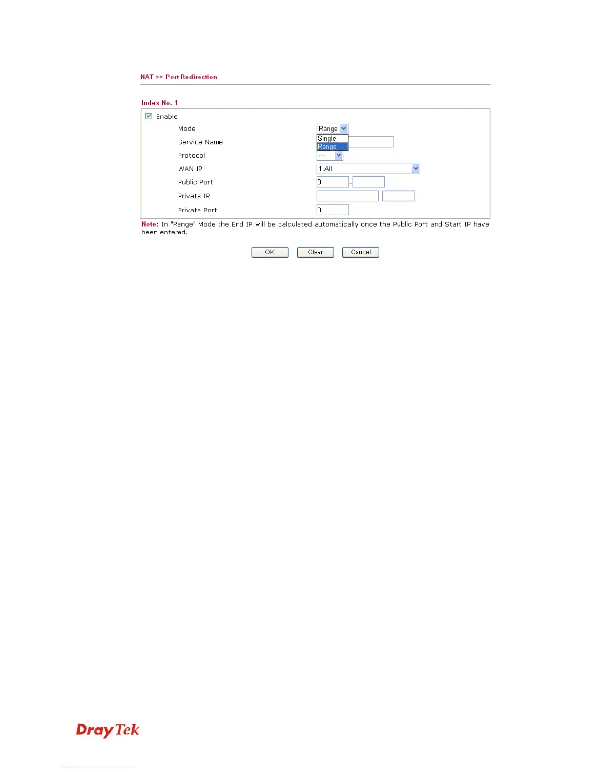 service. If you choose Range as the port redirection mode, you will