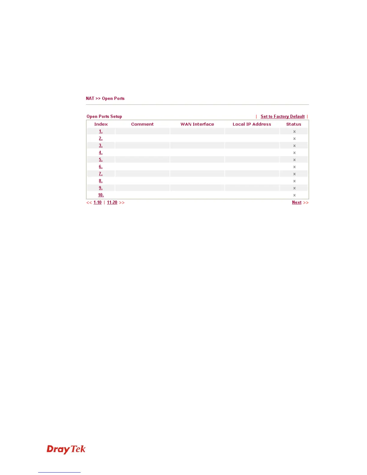 Click Open Ports to open the following page: