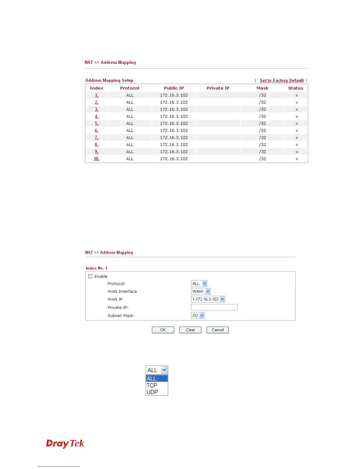 Protocol Display the protocol used for this address mapping.
