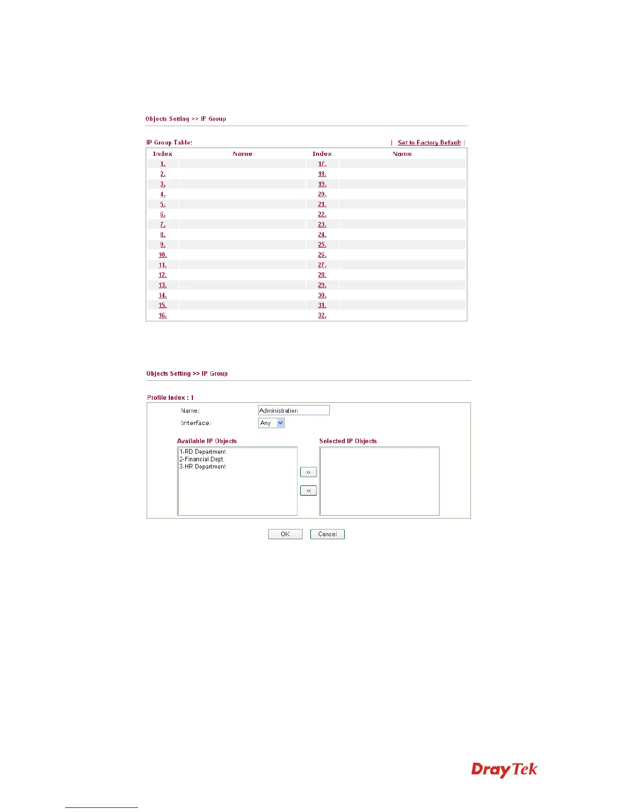 Selected IP Objects Click >> button to add the selected IP objects in this box.