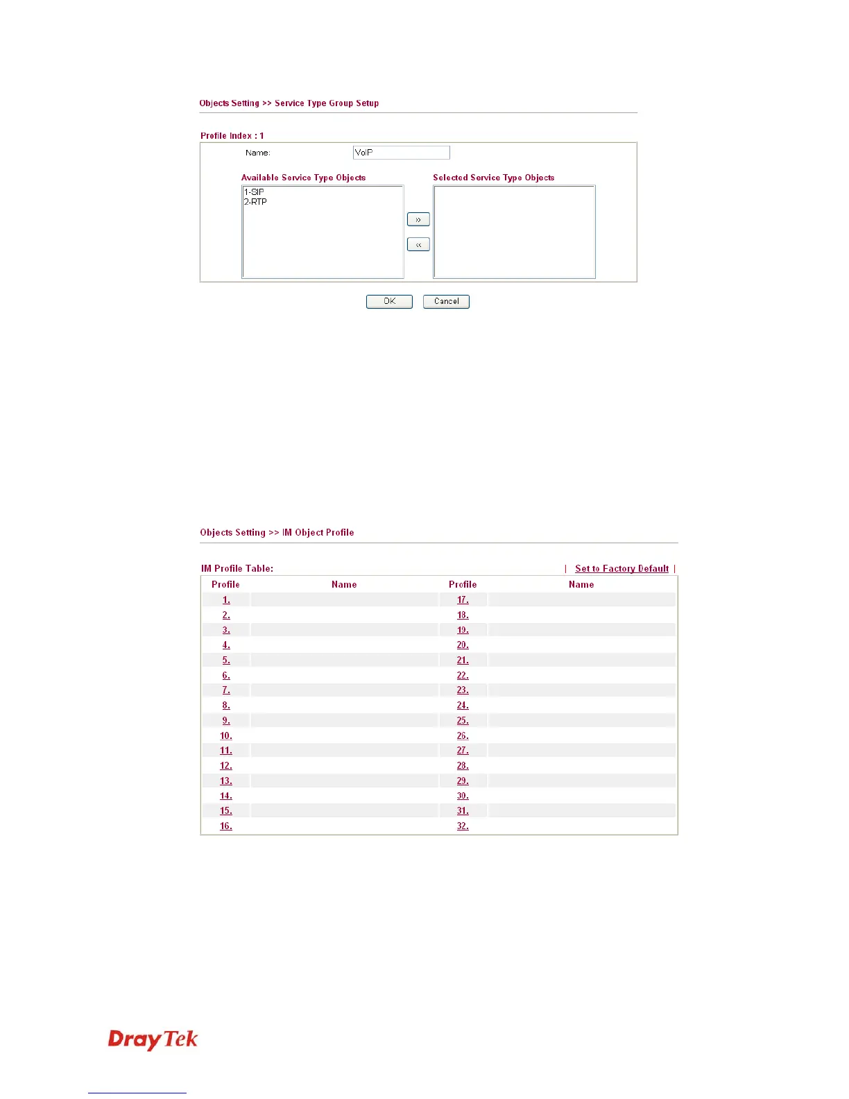 configured here will be seen and adopted in CSM>>IM/P2P Filter Profile page.
