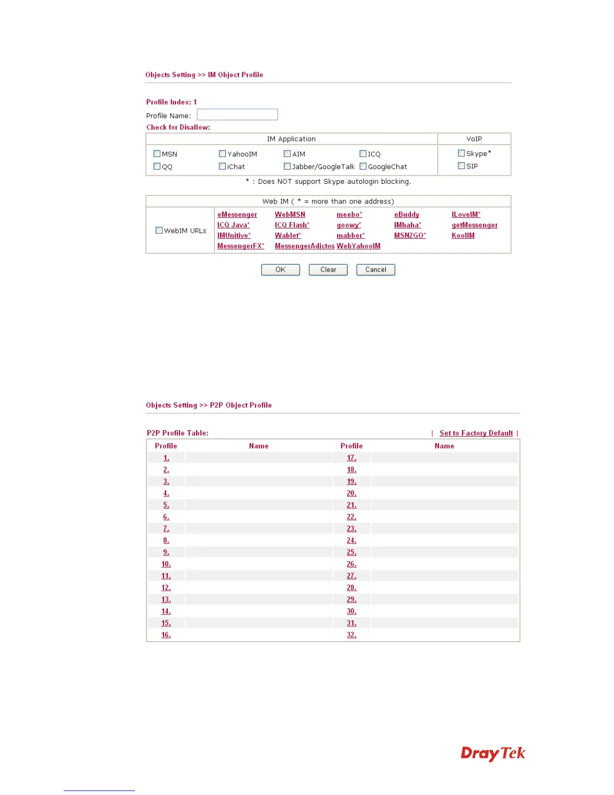 configured here will be seen and adopted in CSM>>IM/P2P Filter Profile page.