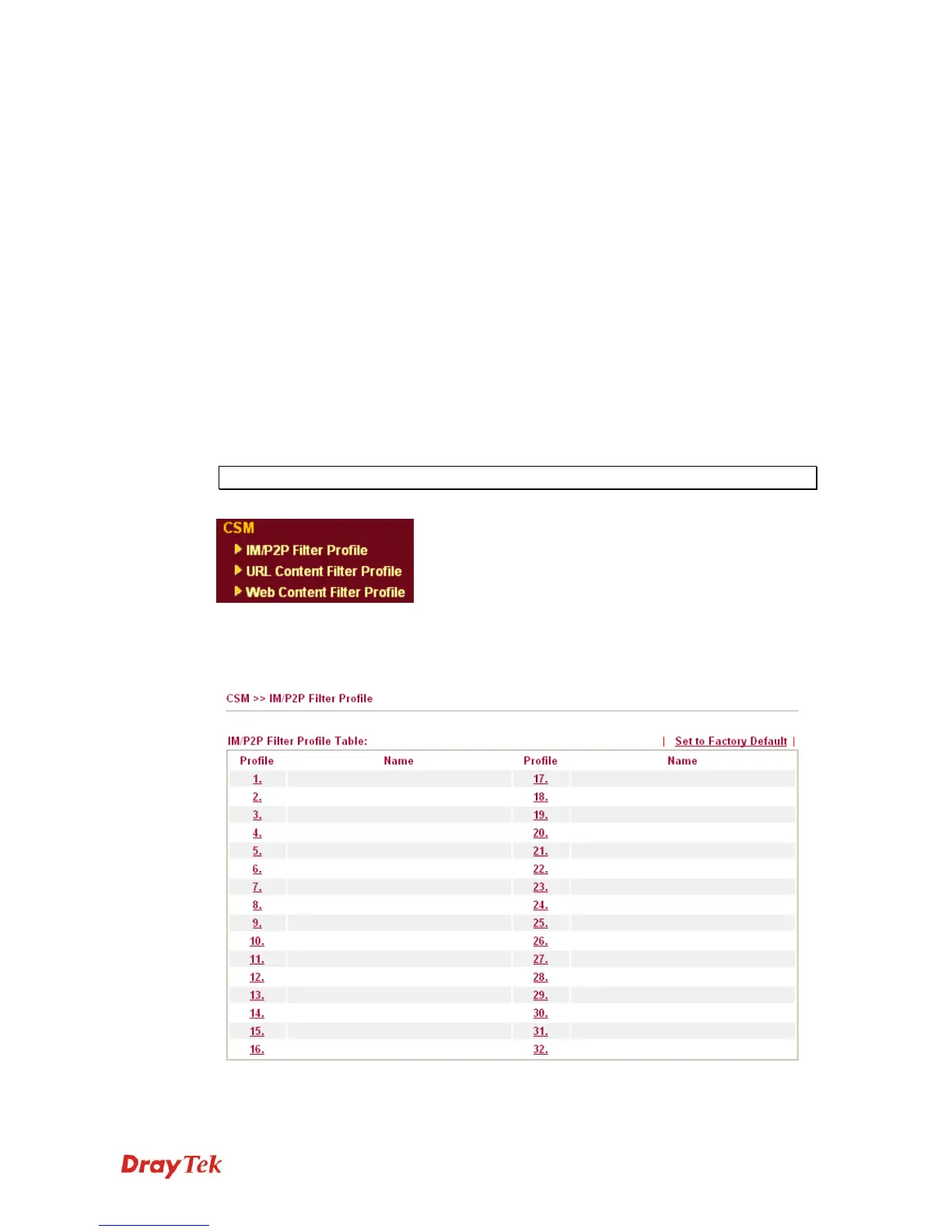Peer) application. CSM profile can be used in Filter Setup page.