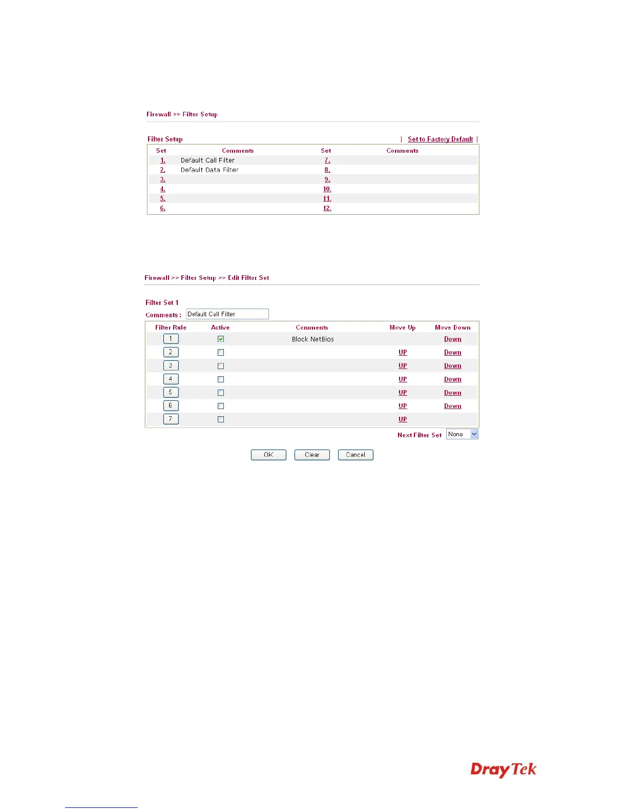 will be shown. Each filter set contains up to 7 rules. Click on the rule number button to edit