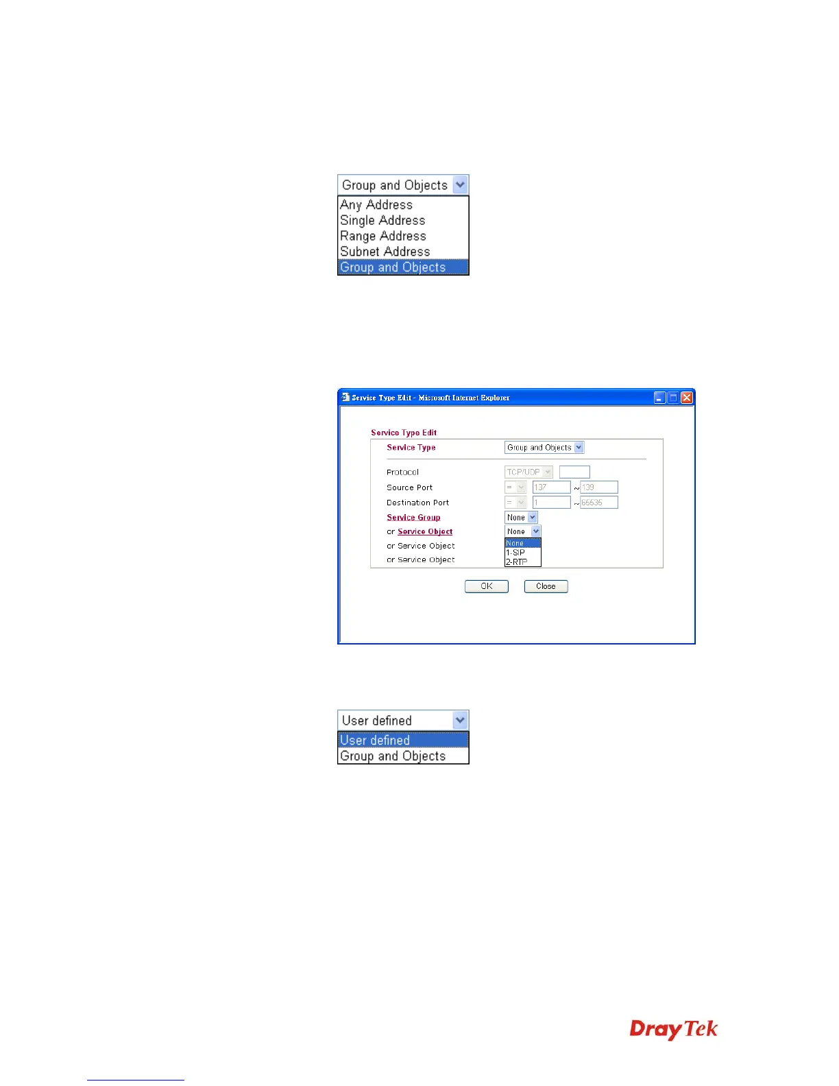 want to use the service type from defined groups or objects, please