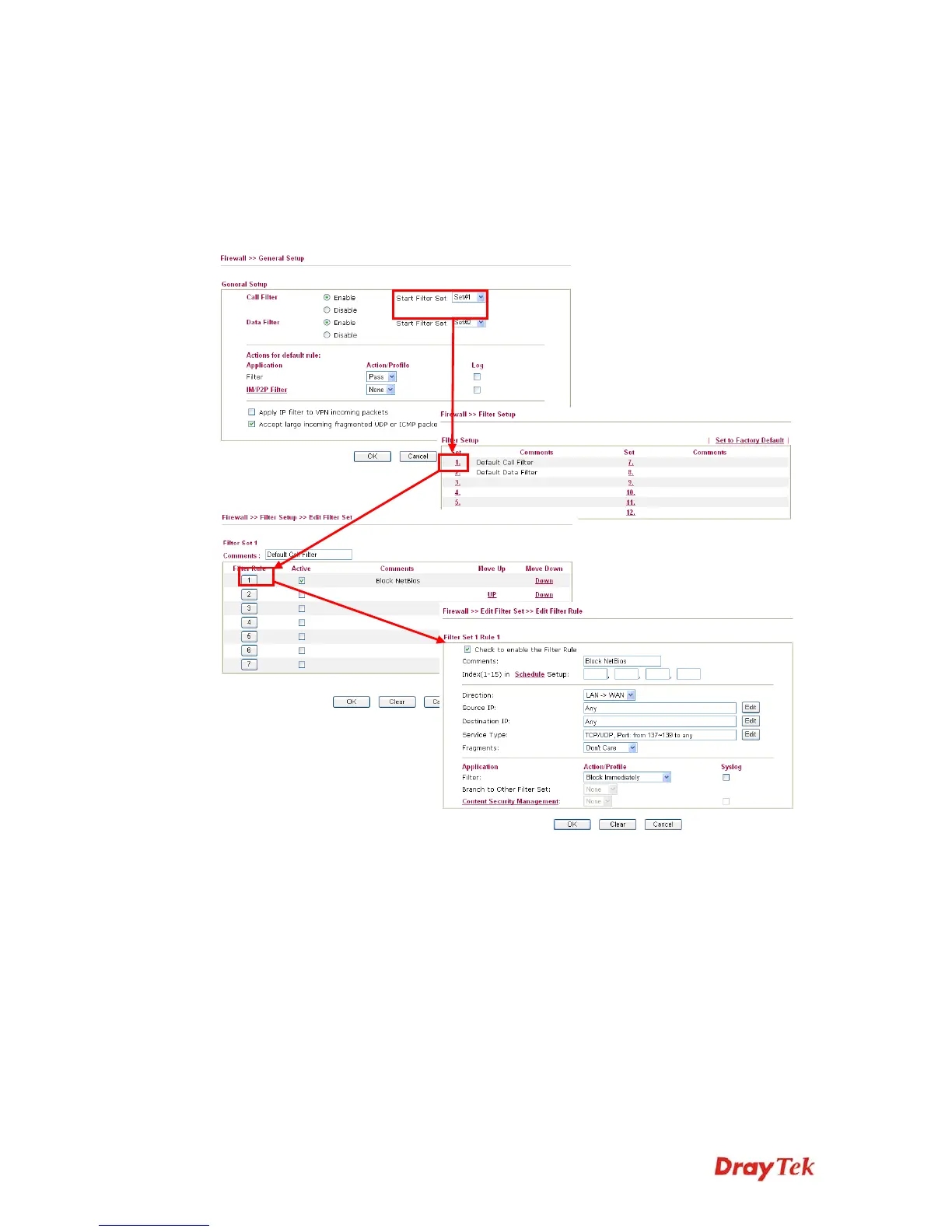 further defined. After that, in General Setup you may specify one set for call filter and one