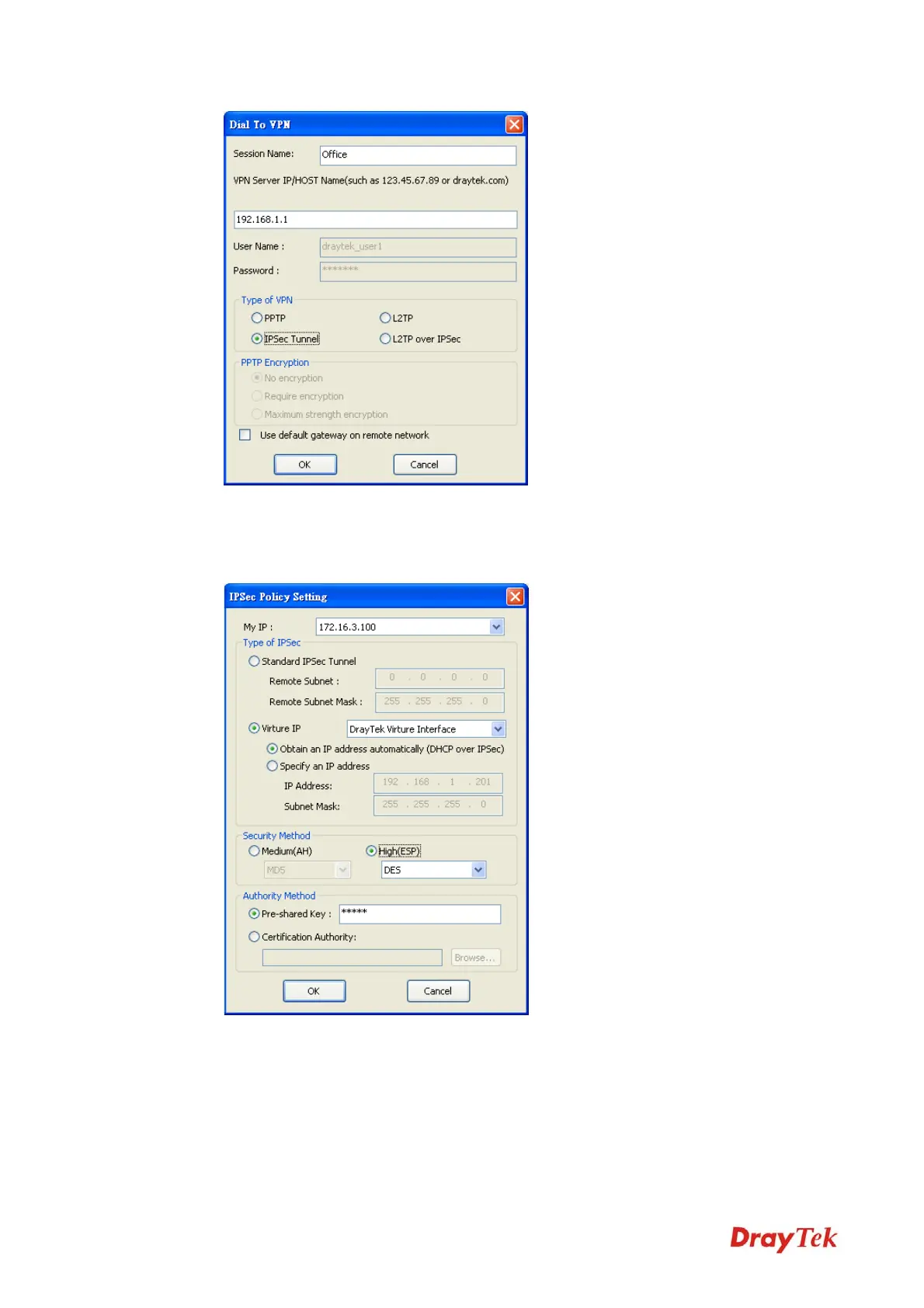 authentication method. If the Pre-Shared Key is selected, it should be consistent with the