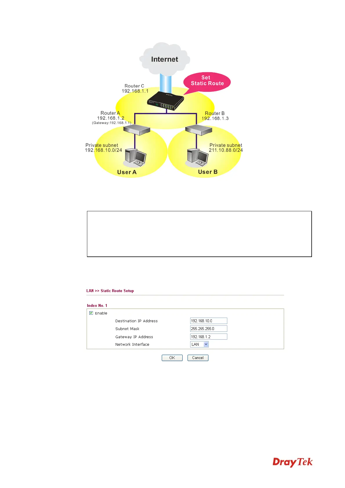 2. Click the LAN - Static Route and click on the Index Number 1. Check the Enable box.