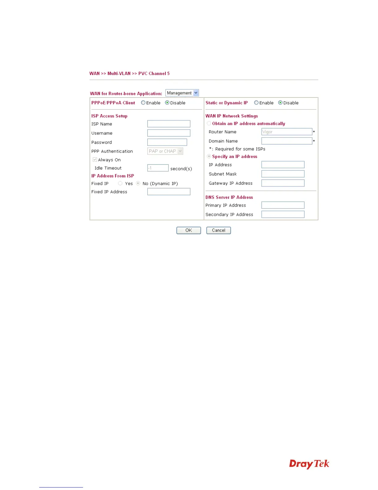 contact with your ISP and then click WAN link of Channel 5, 6 or 7 to configure your router.