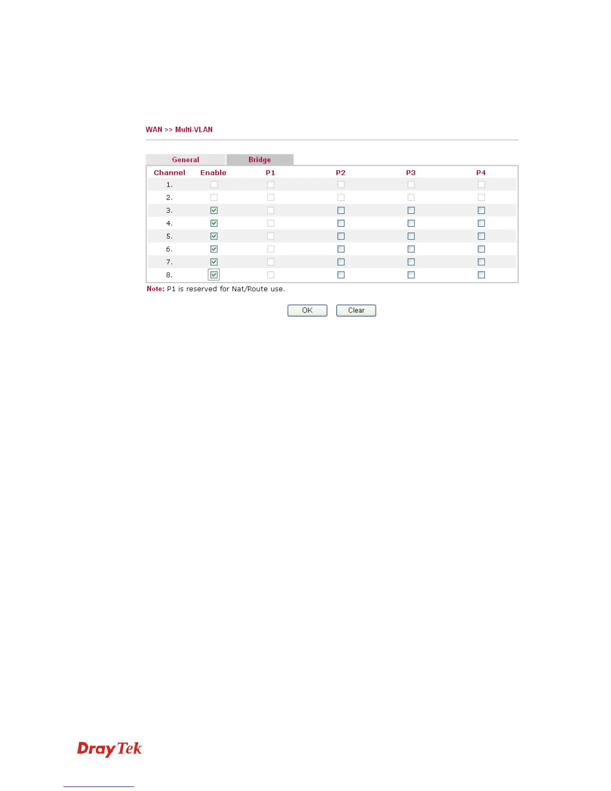 be set in this page, for channel 1 to 2 are reserved for NAT