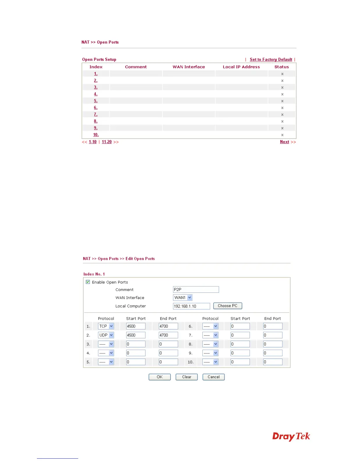 To add or edit port settings, click one index number on the page. The index entry setup page