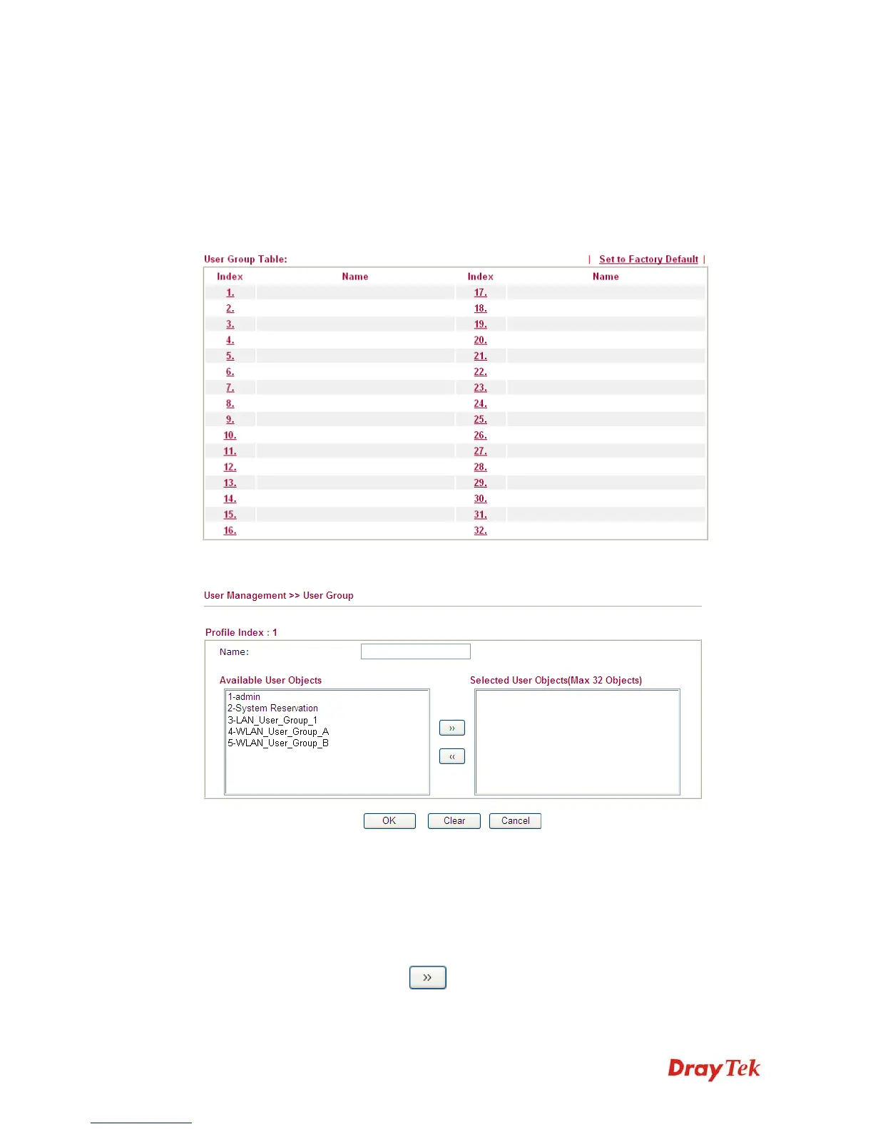 This page allows you to bind several user profiles into one group. These groups will be used in
