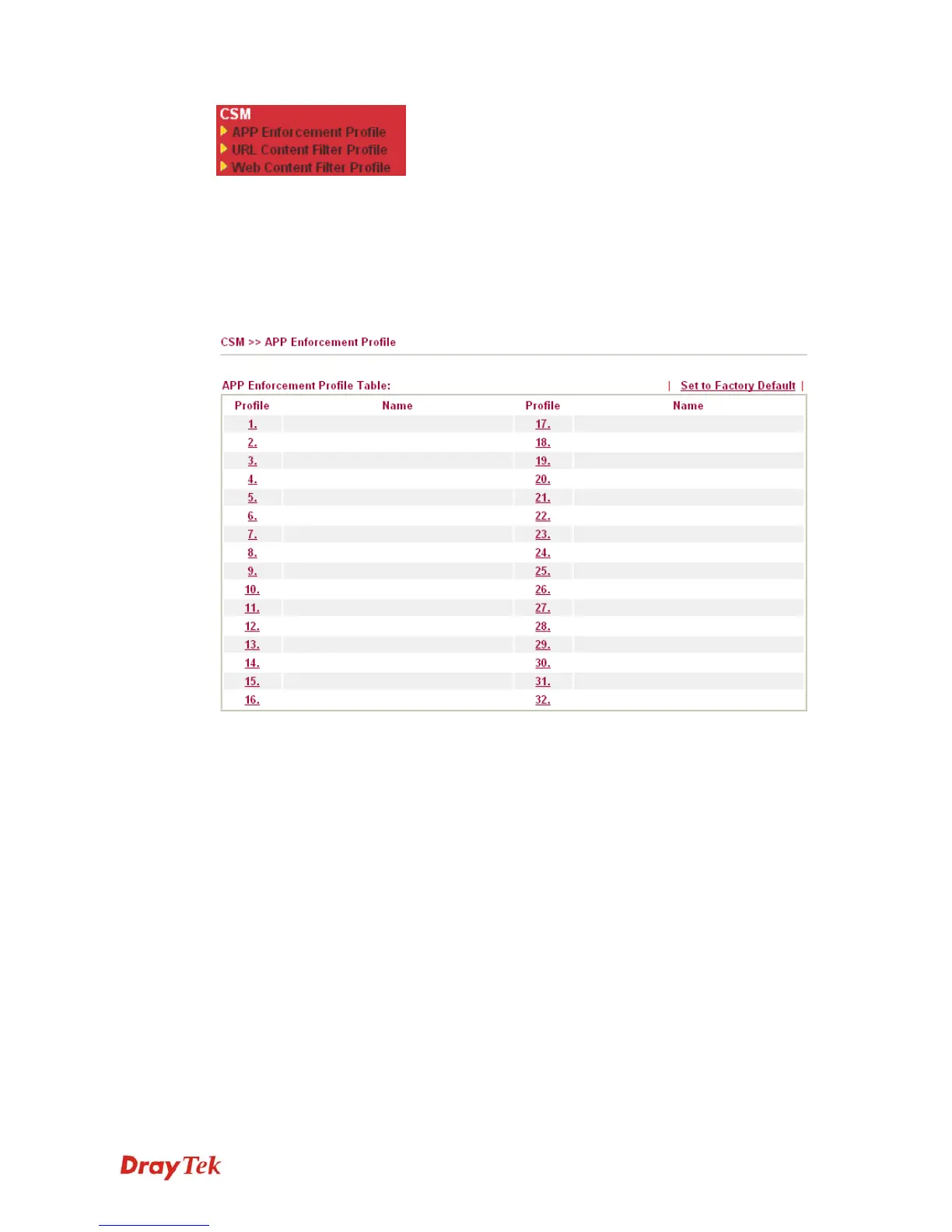 application. This page allows you to set 32 profiles for different requirements. The APP