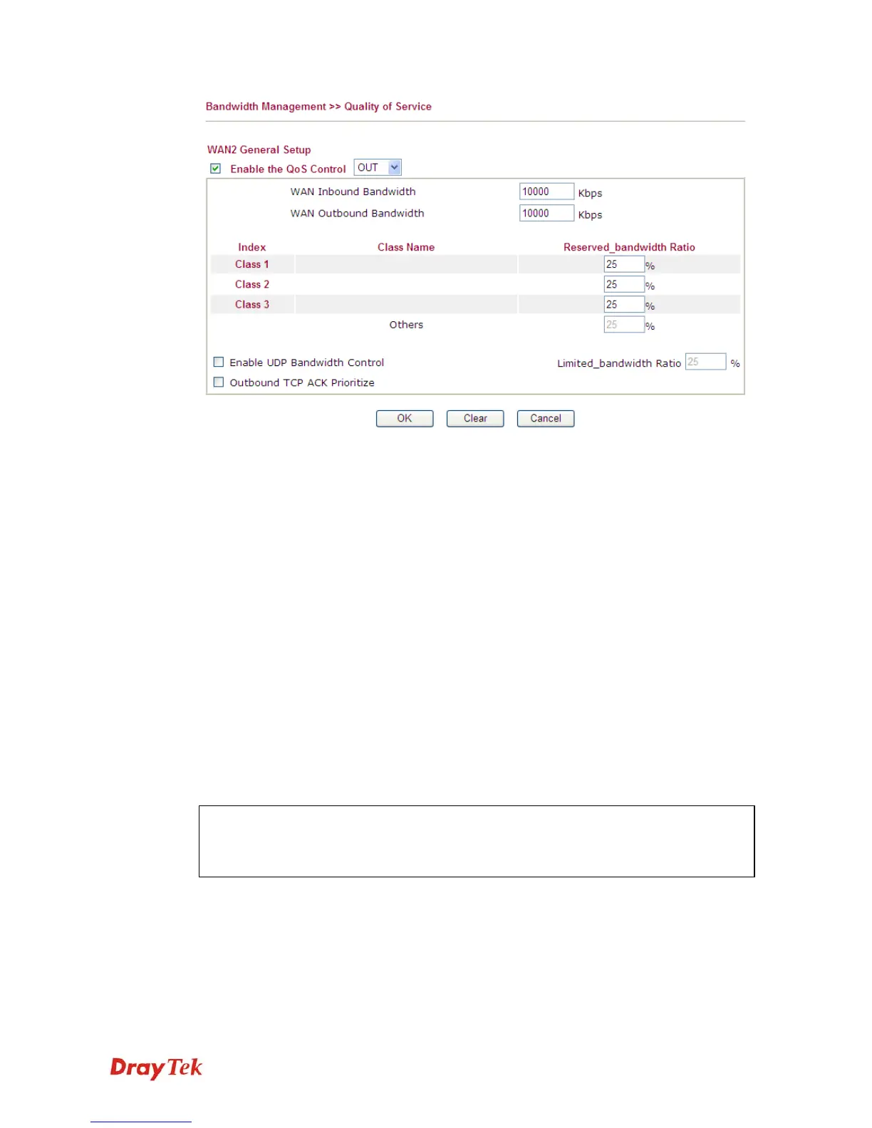correct calculation of QoS. It is suggested to set the bandwidth value for inbound/outbound