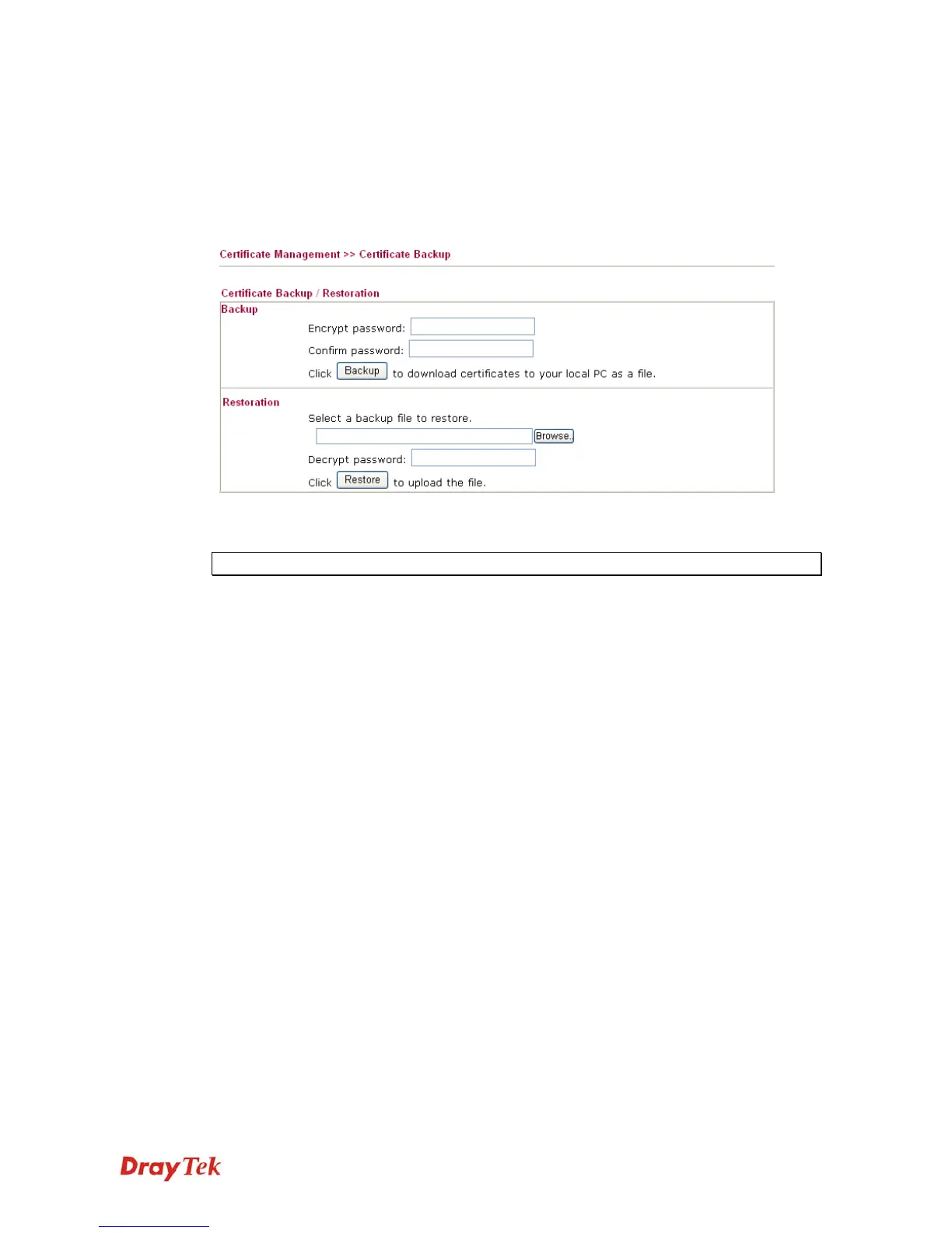Local certificate and Trusted CA certificate for this router can be saved within one file. Please