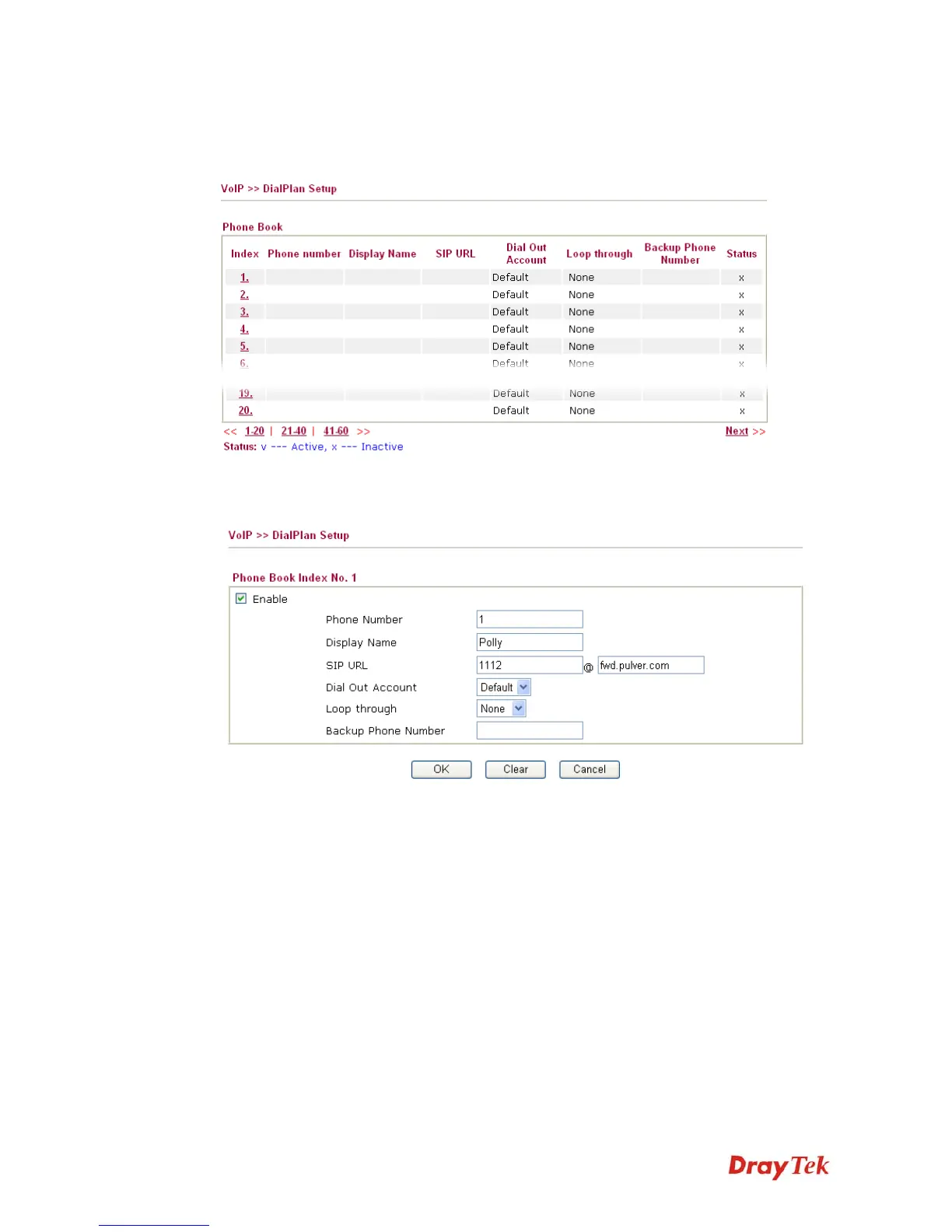 through and Backup Phone Number will be displayed if you are using Vigor 2820V for