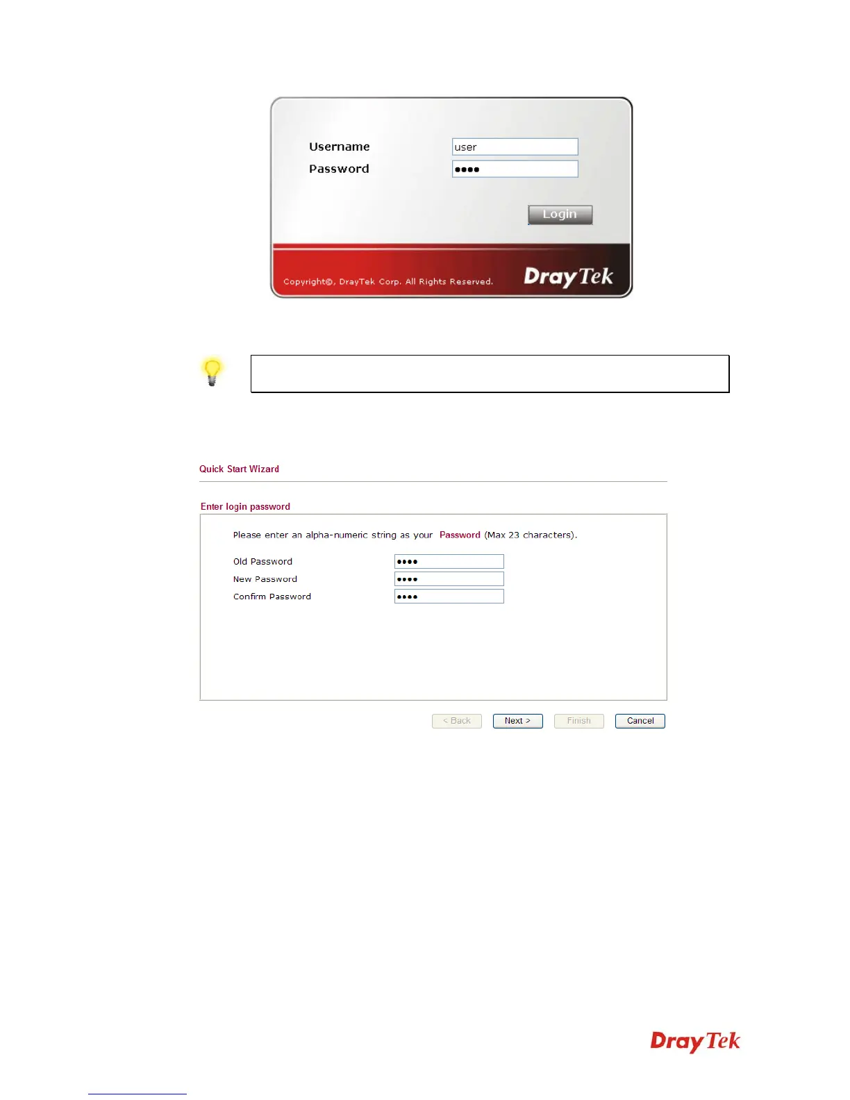Notice: Quick Start Wizard for user mode operation is the same as for admin