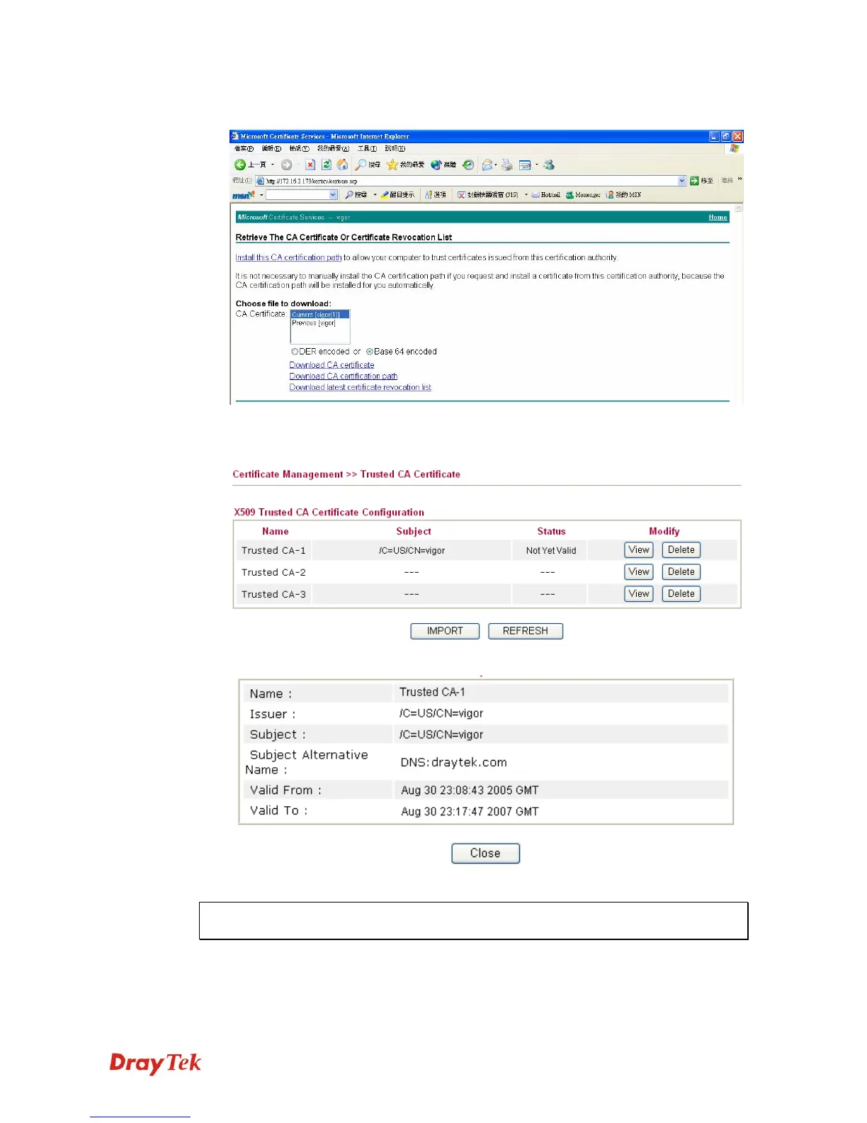 the file to import the certificate (.cer file) into Vigor router. When finished, click refresh