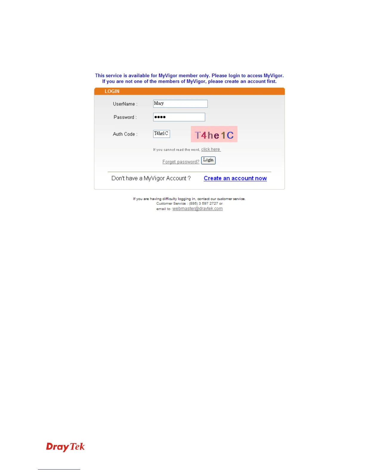 Now, click Login. Your account has been activated. You can access into MyVigor server to