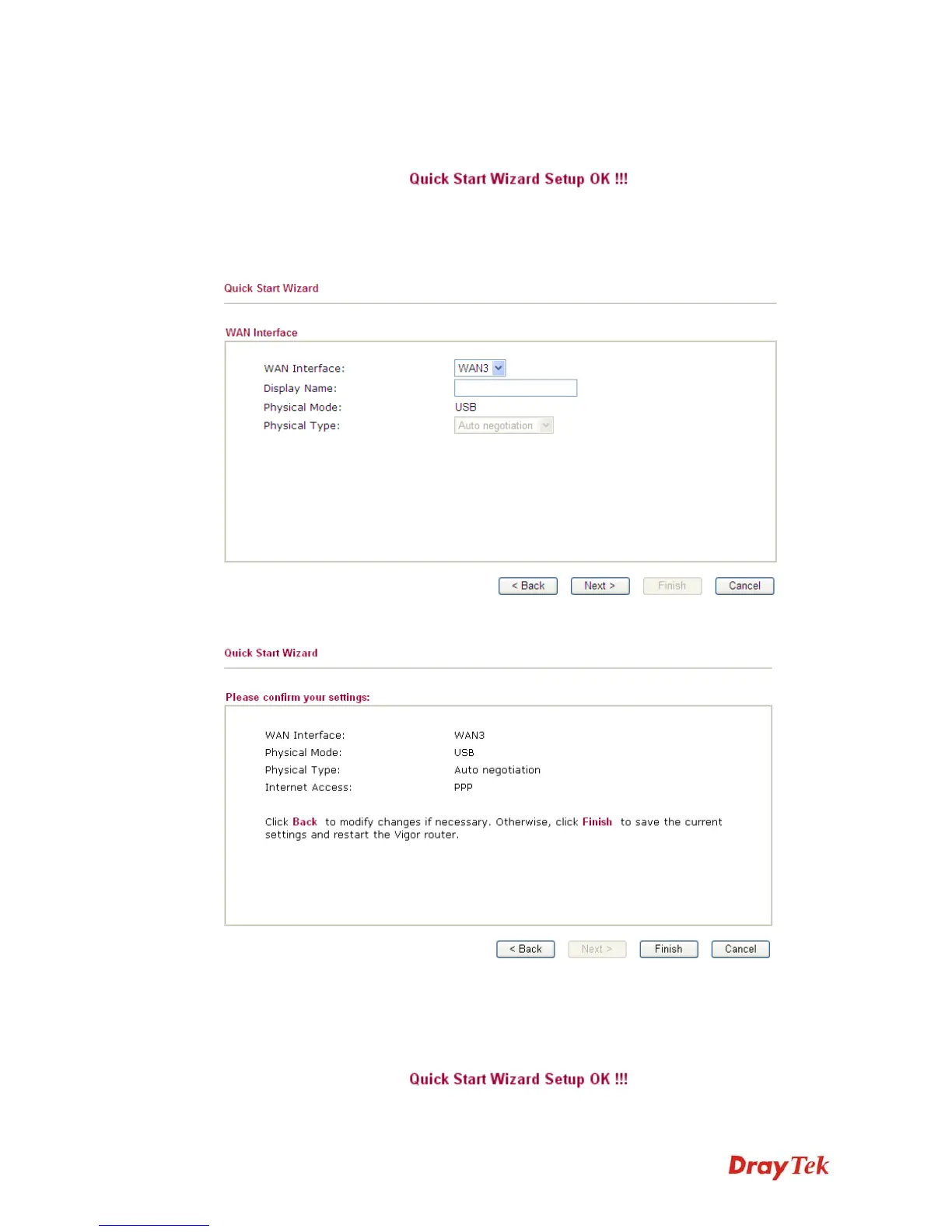 Click Finish. A page of Quick Start Wizard Setup OK!!! will appear. Then, the system