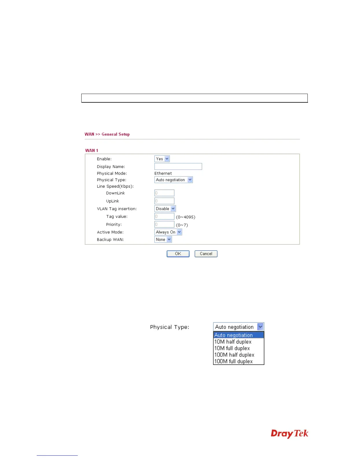 Be aware that WAN2 is fixed with physical mode of Giga Ethernet.