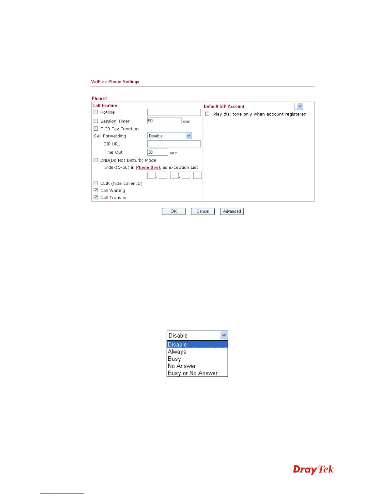 Call Forwarding There are four options for you to choose. Disable is to close call