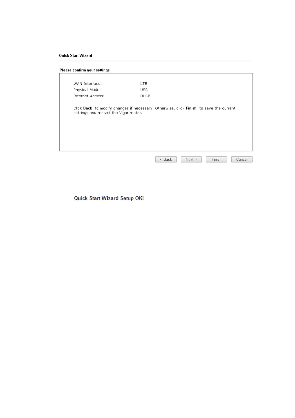 4. Click Finish. A page of Quick Start Wizard Setup OK!!! will appear. Then,