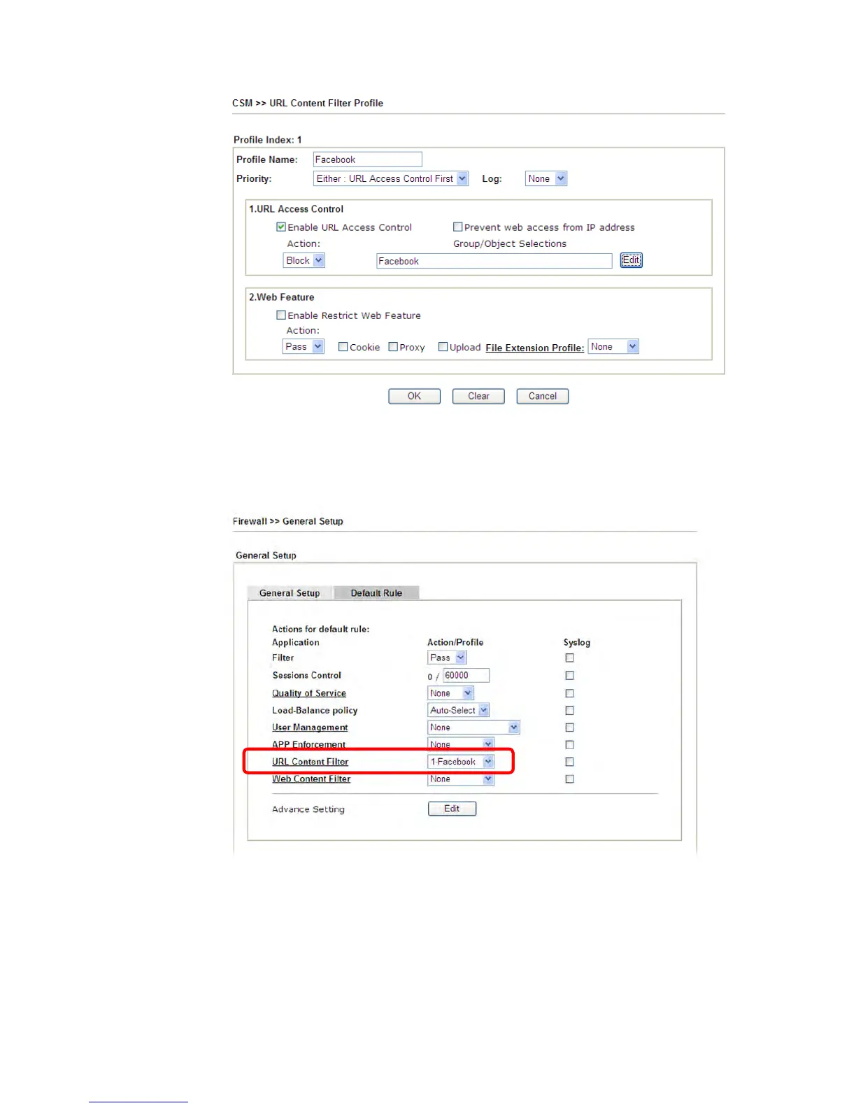 5. When you finished the above steps, click OK. Then, open Firewall>>General Setup.