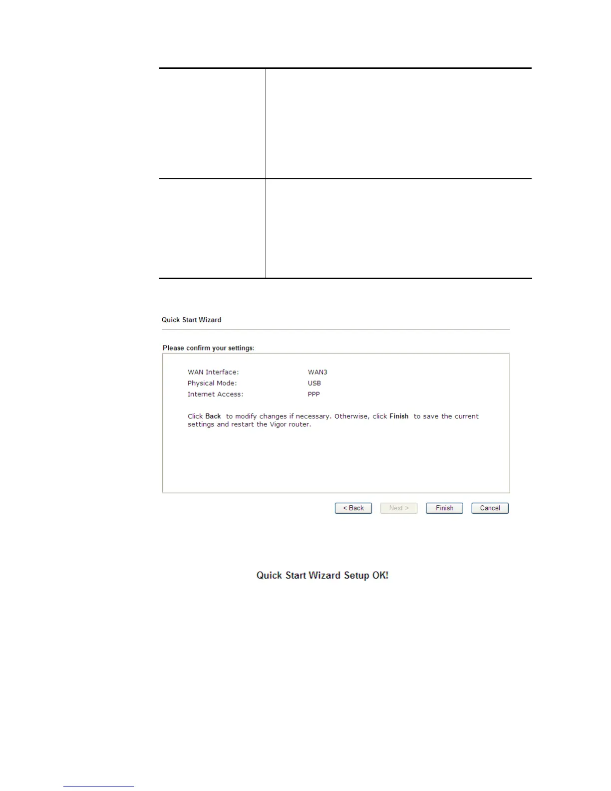 4. Click Finish. A page of Quick Start Wizard Setup OK!!! will appear. Then, the system