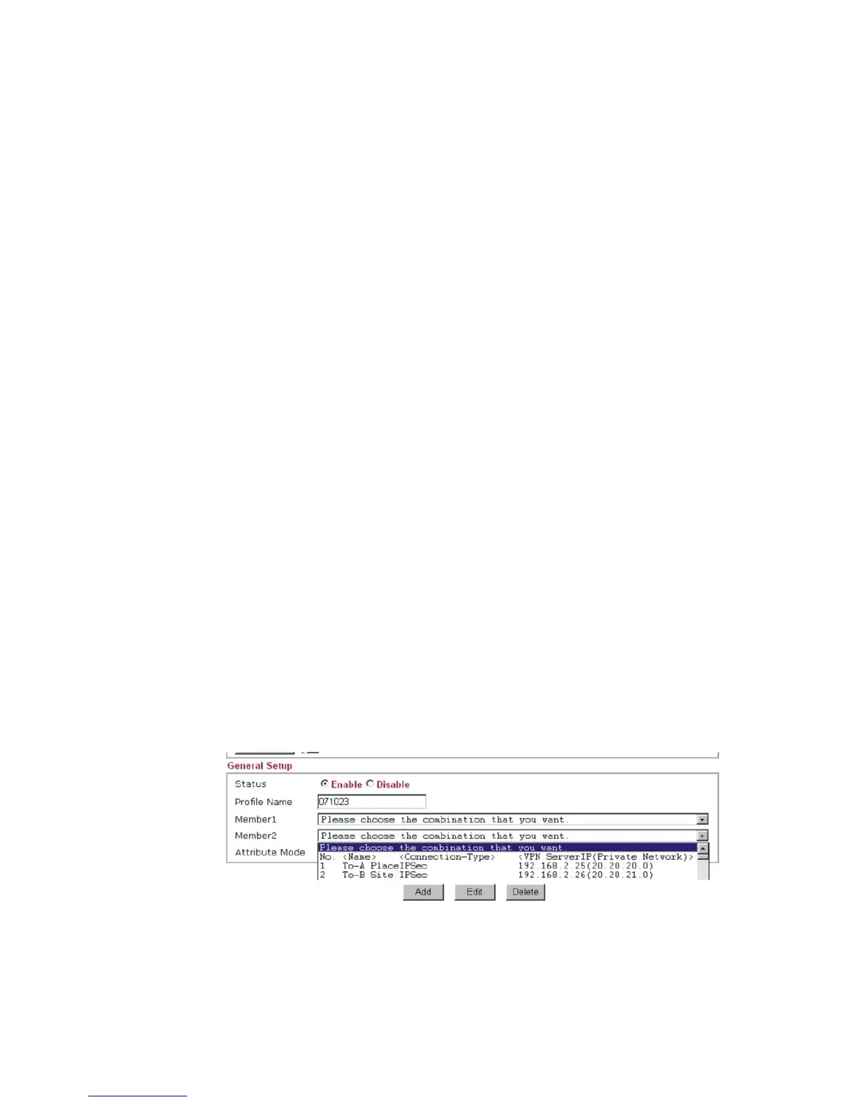 choose one of the LAN-to-LAN profiles from Member1 drop down list; choose one of