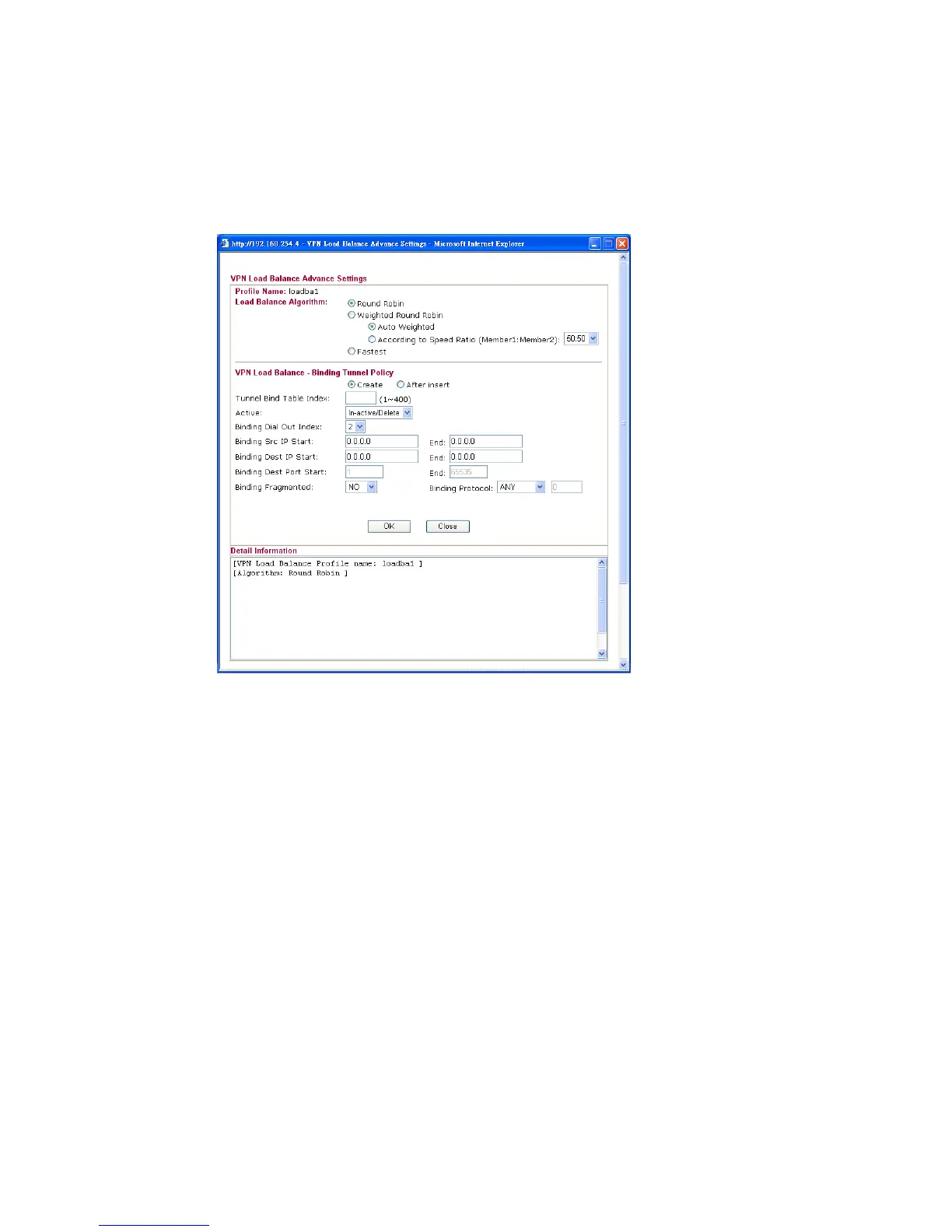 for more detailed configuration. The windows for advanced load balance and backup are