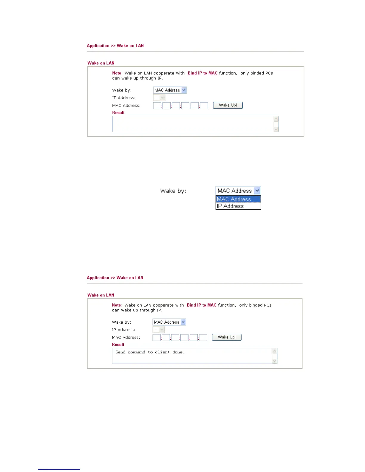 Wake by Two types provide for you to wake up the binded IP. If you