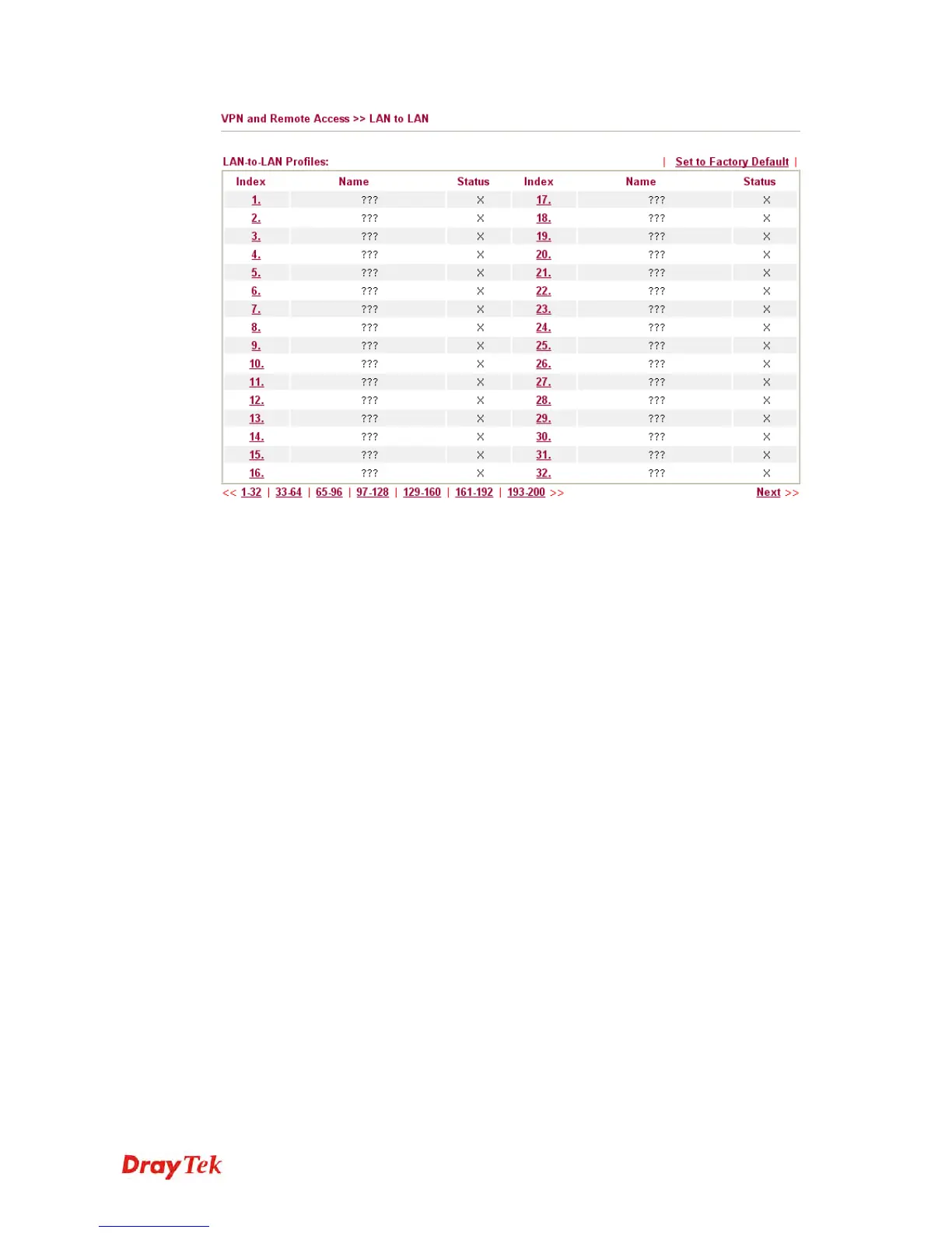 Click each index to edit each profile and you will get the following page. Each LAN-to-LAN