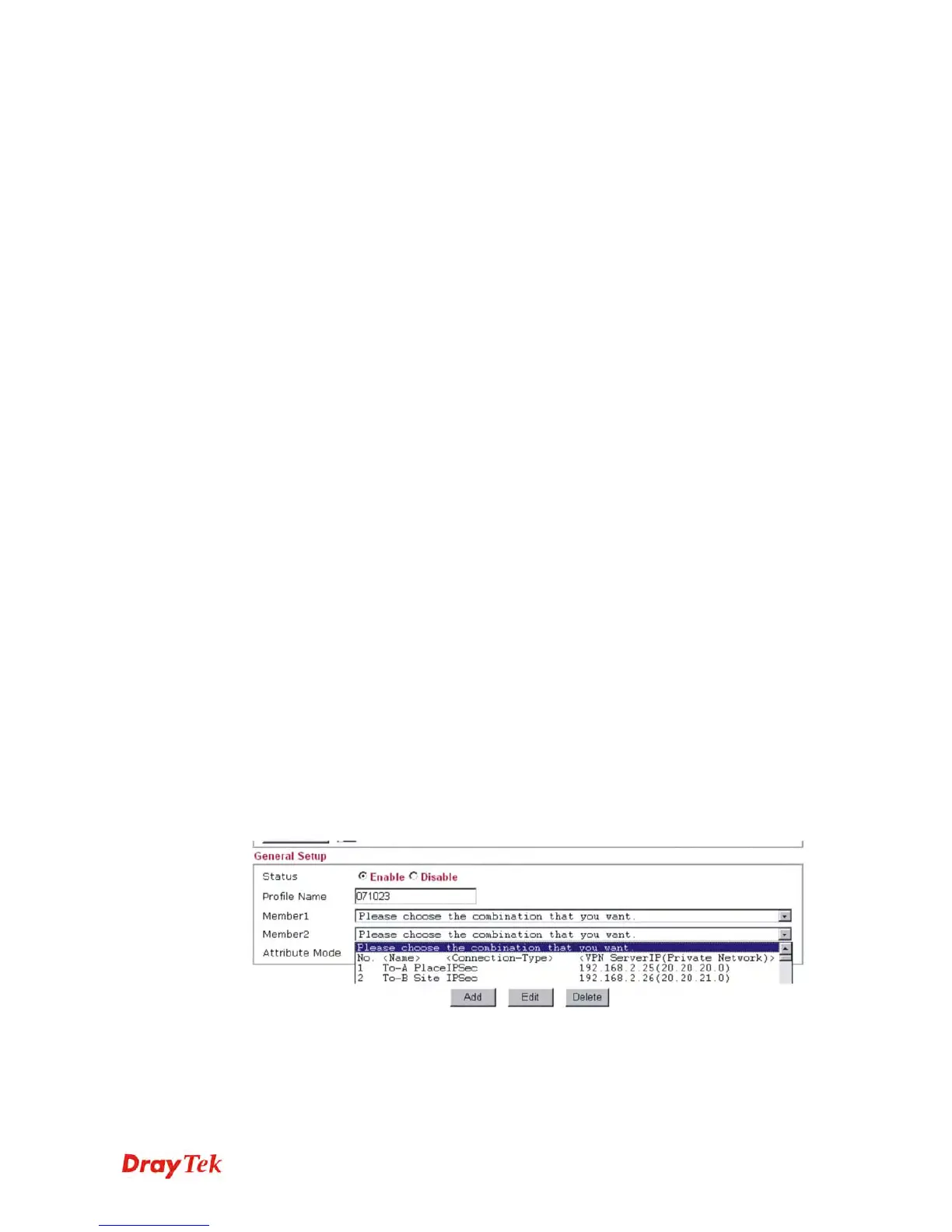 choose one of the LAN-to-LAN profiles from Member1 drop down list; choose one of