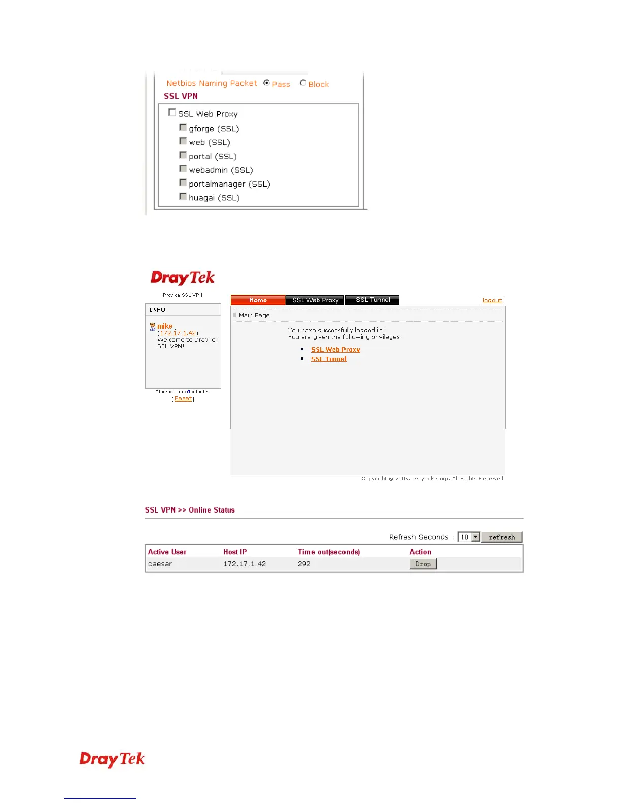 Action You can click Drop to drop certain login user from the router's SSL Portal UI.