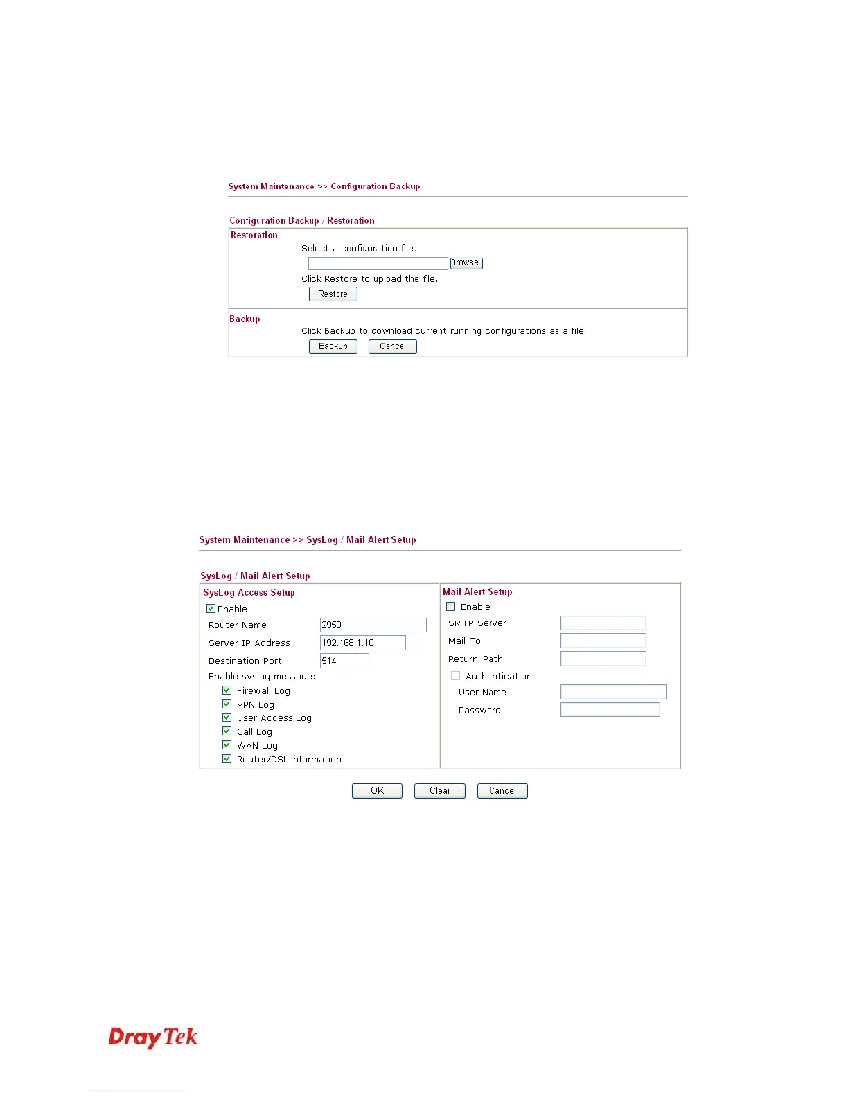 1. Go to System Maintenance >> Configuration Backup. The following windows will