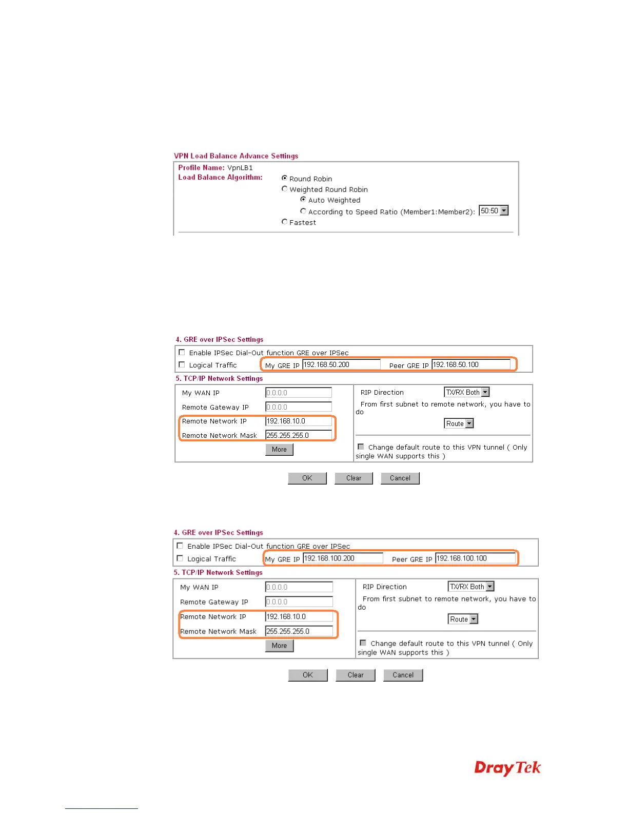 ¾ Finish GRE over IPSec setting in LAN-to-LAN Dial In Profile for matching with VPN