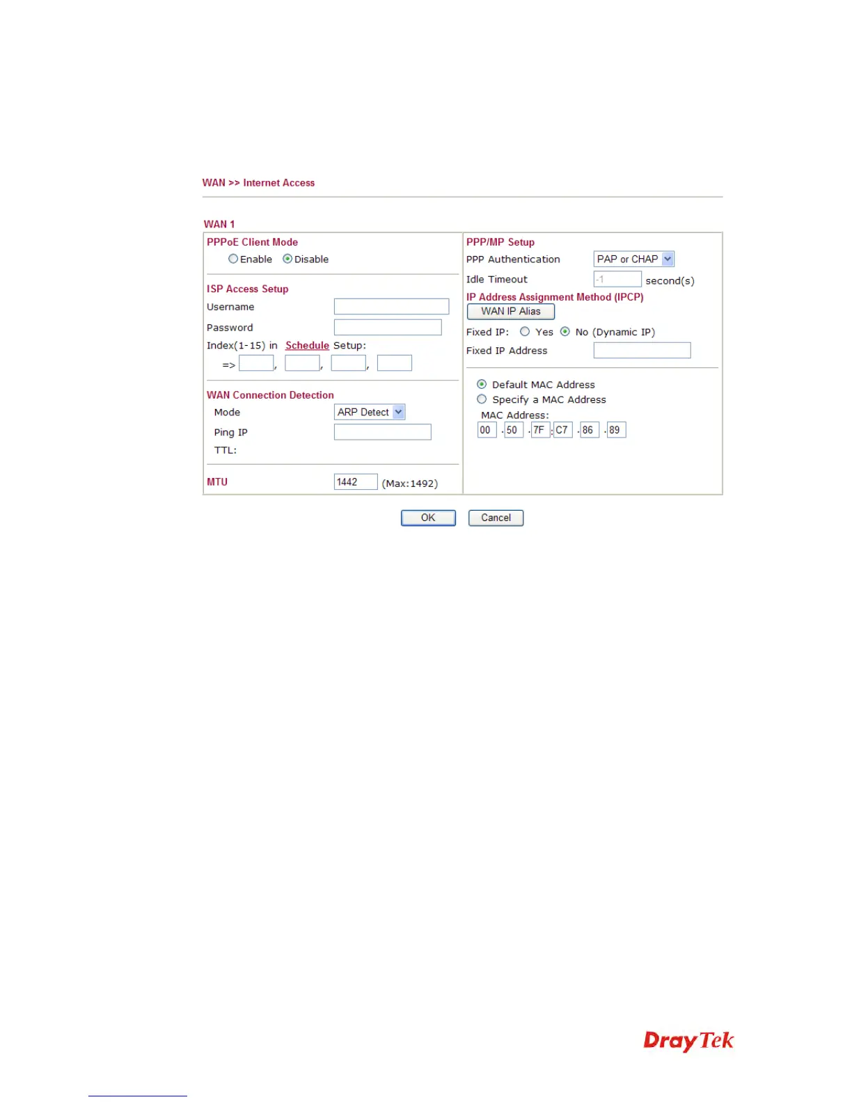 PPPoE Client Mode Click Enable for activating this function. If you click Disable, this