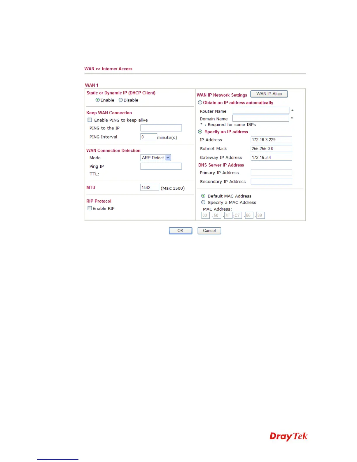 Internet Access from WAN menu. Then, select Static or Dynamic IP mode for WAN2.