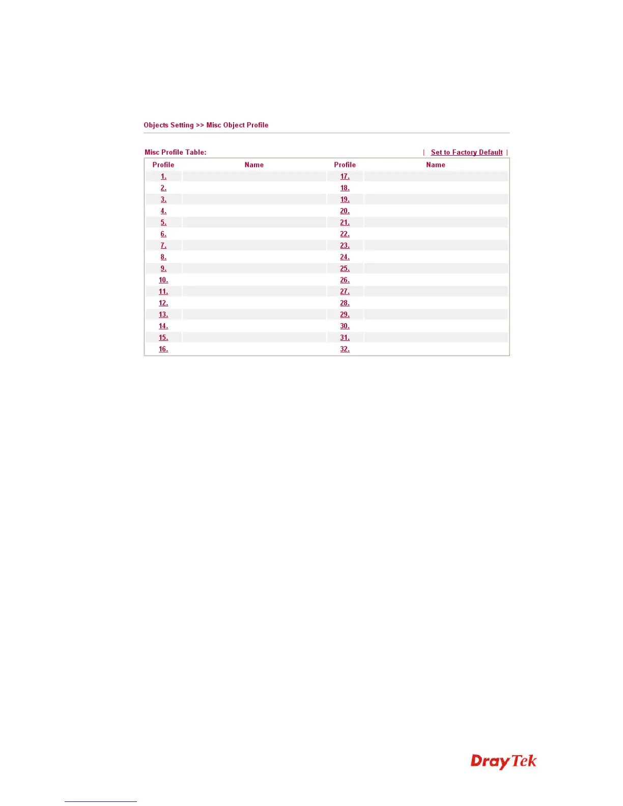 page, you can use Misc Object drop down list to choose the proper profile configured here