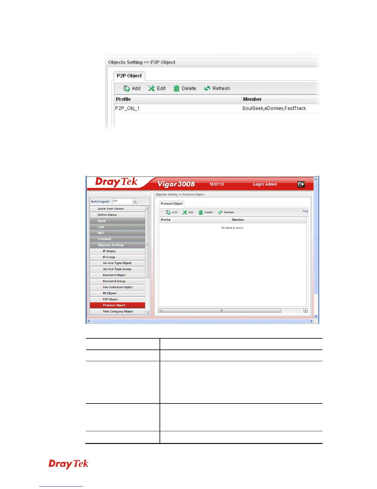 Vigor300B. Common services will be listed in this function and can be selected to be