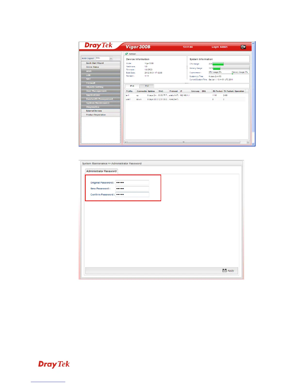 5. Enter the login password (admin) on the field of Original Password. Type a new one