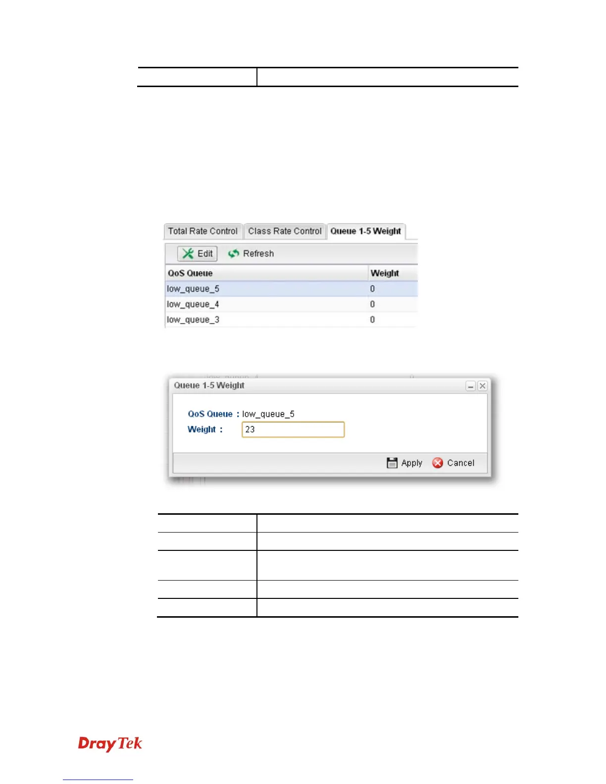 1. Open Bandwidth Management>> Outgoing Class and click the Queue 1-5 Weight