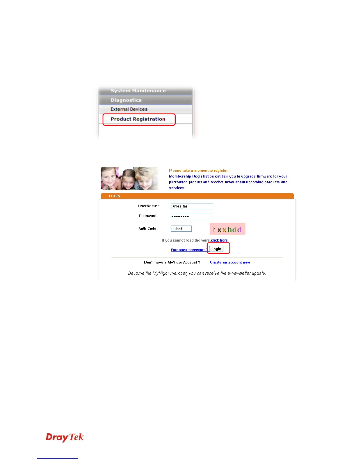 configurator of Vigor300B and click Product Registration.