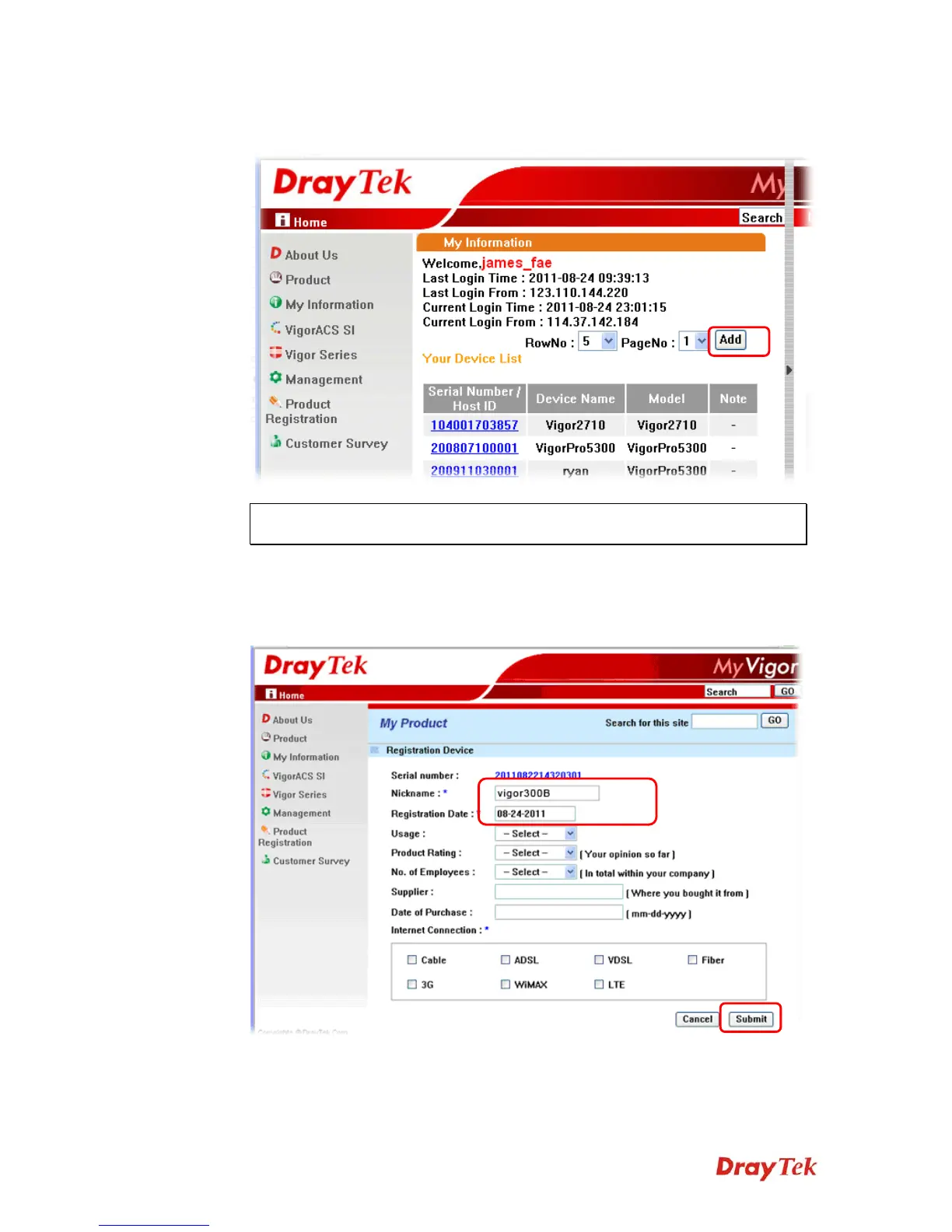 Note: Below the field of Your Device List, all the Vigor routers that you have